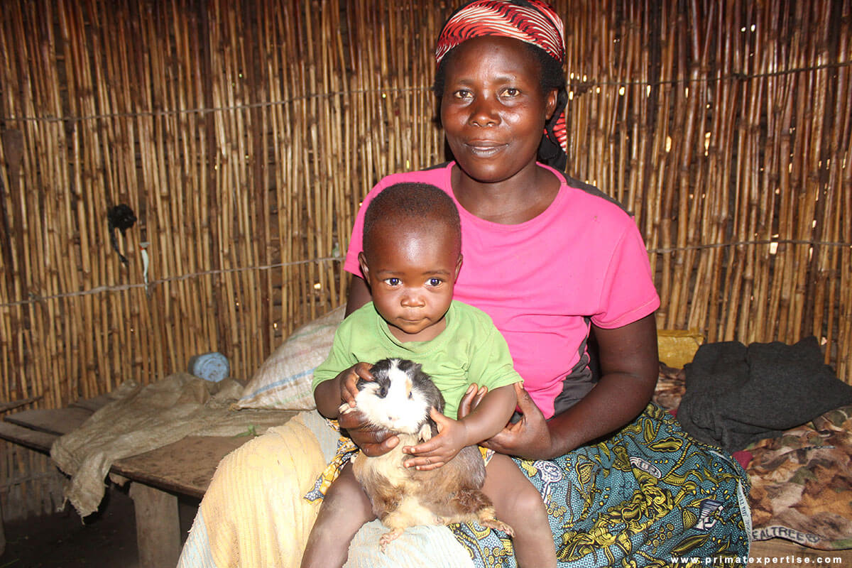 Protein intake from guinea pigs in pygmy households, particularly for children and women, is decreasing the consumption of game from the natural habitat of non-human primates.