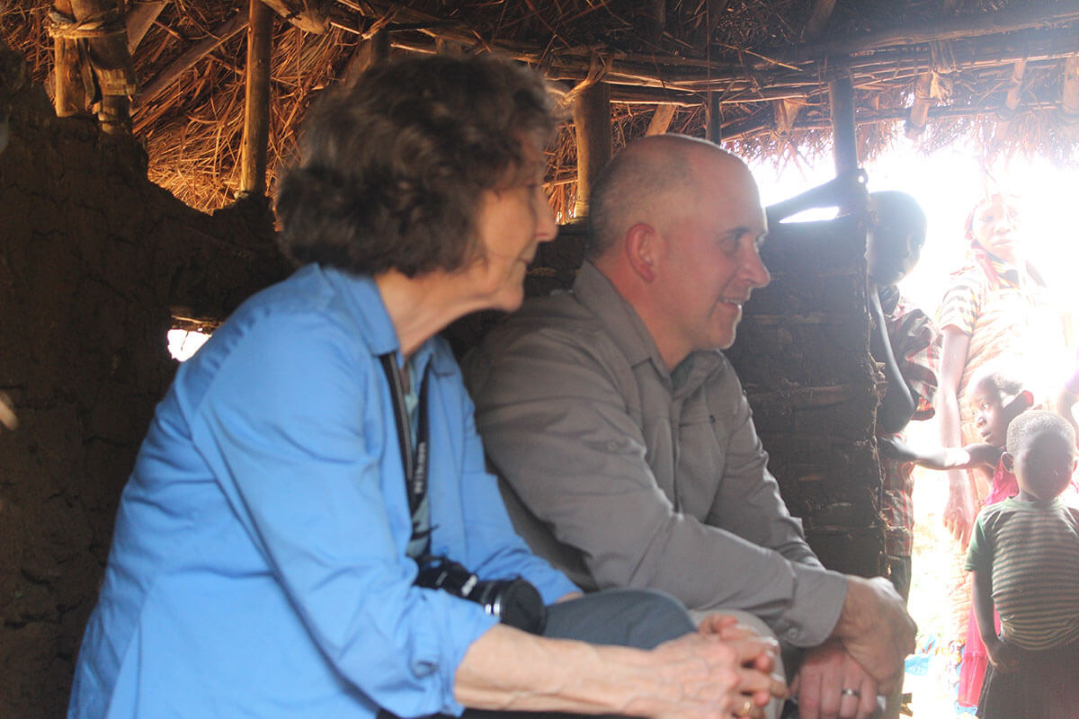 Anthea Gotto and Adam Henson in full discussion with the pygmies in Buyungule
